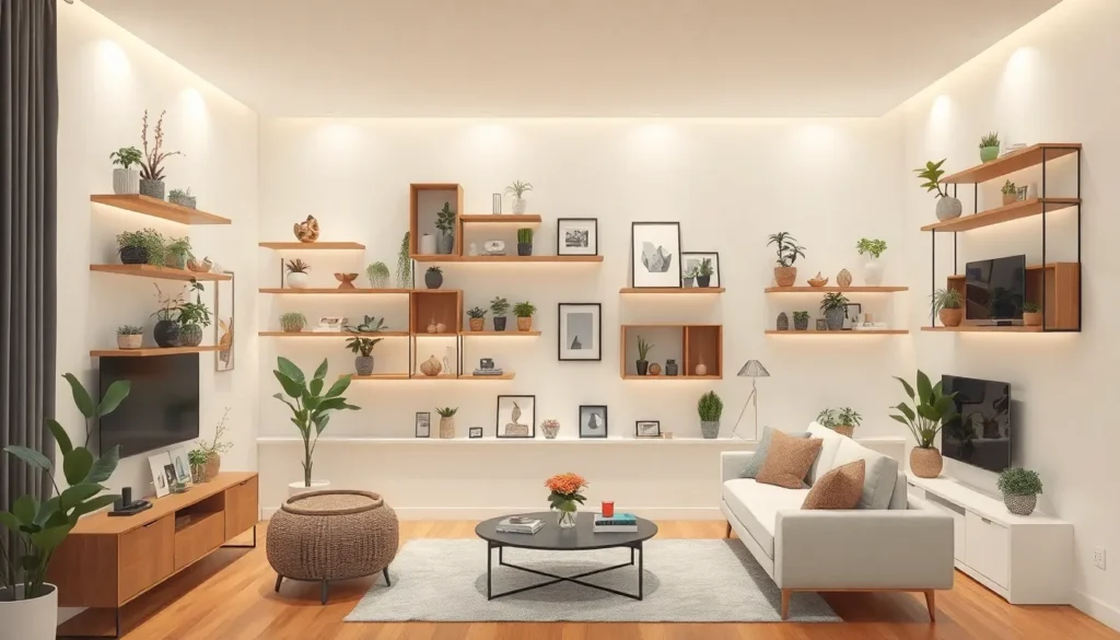 Wall-mounted shelves provide a practical solution for maximizing vertical space. They come in numerous shapes and sizes, from simple floating designs to elaborate geometric arrangements. With easy installation, these shelves attach directly to walls, allowing for personalized configurations. Homeowners often choose them to display books, plants, or decorative items. Popular materials such as wood, metal, or glass contribute to diverse styles, seamlessly blending with any decor theme. Enhancing a room’s visual interest, wall-mounted shelves create functional displays that draw attention.