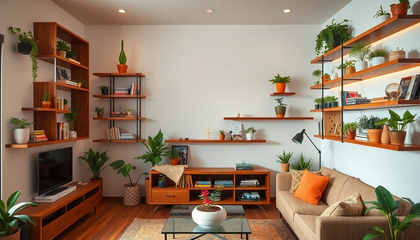 Corner shelves utilize often-overlooked areas, transforming awkward spaces into functional displays. These shelves fit snugly in tight corners, maximizing storage without sacrificing floor space. Homeowners can choose from various designs, including tiered shelves or circular units, catering to individual tastes. Adding depth and interest, corner shelves create dynamic visual lines within a room. They work well for plants, books, or decorative accents, making previously unused corners inviting and practical. Corner shelves enhance overall room functionality while adding a unique design element.